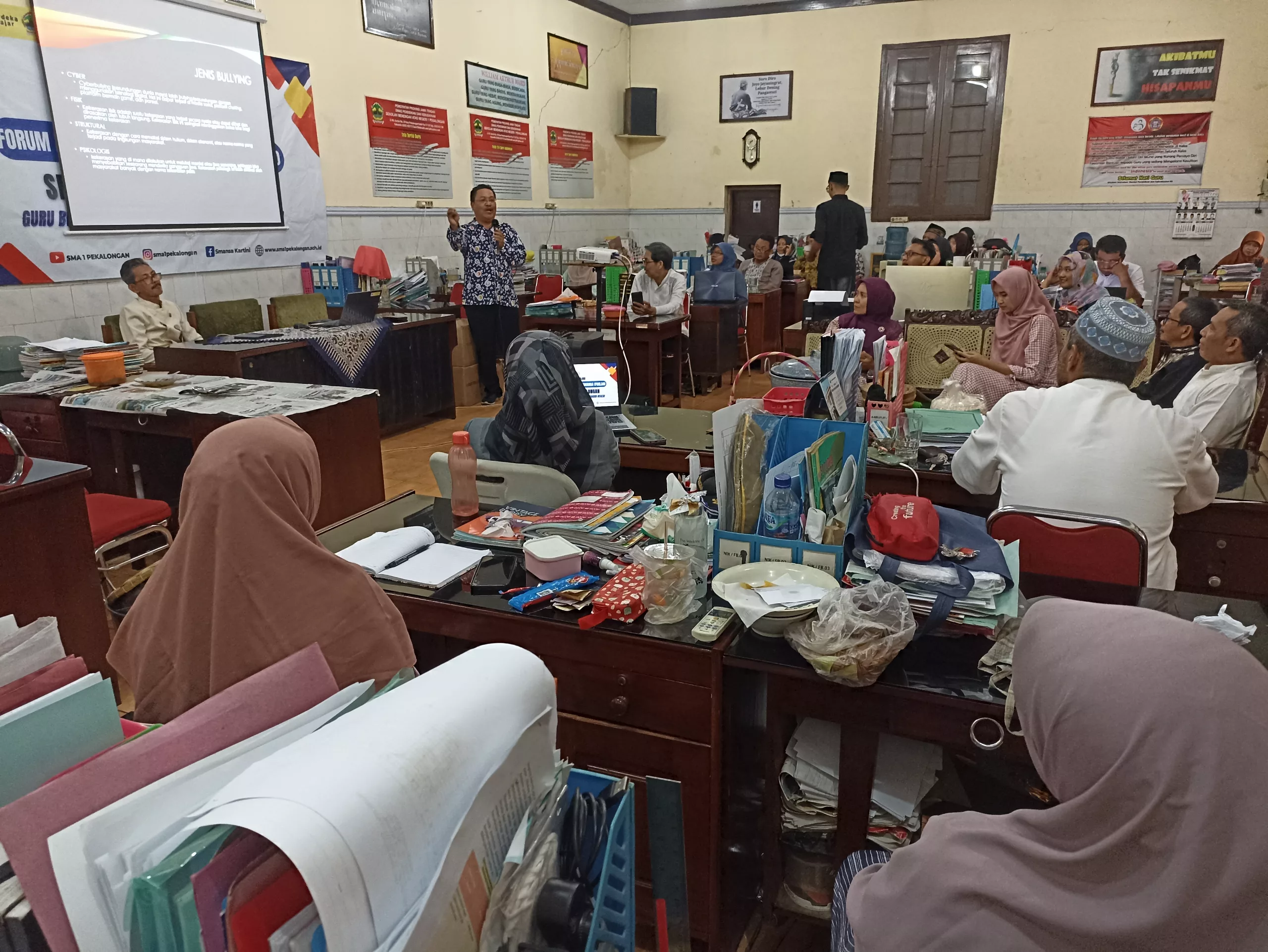 Pekalongan, 15 Februari 2024 – FORLAG (Forum Belajar Antar Guru) SMA Negeri 1 Pekalongan mengadakan kegiatan berbagi praktik baik tentang bullying di sekolah pada hari Kamis, 15 Februari 2024. Kegiatan ini dilaksanakan di ruang guru dan dihadiri oleh semua guru dan staff tata usaha SMA Negeri 1 Pekalongan. Kegiatan ini bertujuan untuk meningkatkan pengetahuan dan keterampilan para guru dan staff tata usaha dalam menghadapi masalah bullying yang sering terjadi di lingkungan sekolah.