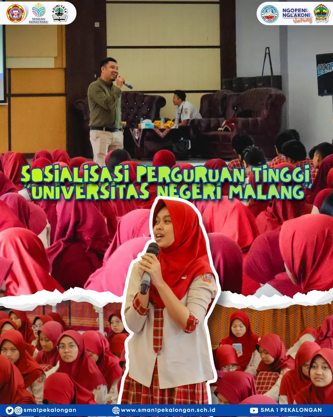 Pada Rabu, 28 Januari 2026, telah dilaksanakan kegiatan Sosialisasi Perguruan Tinggi oleh Universitas Negeri Malang (UM) di Aula SMA Negeri 1 Pekalongan.